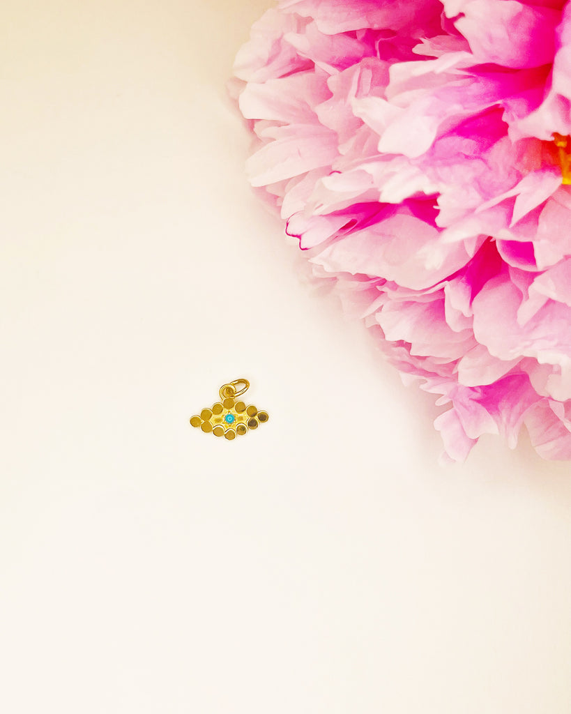 Modernized Evil Eye charm set with 2mm turquoise center.