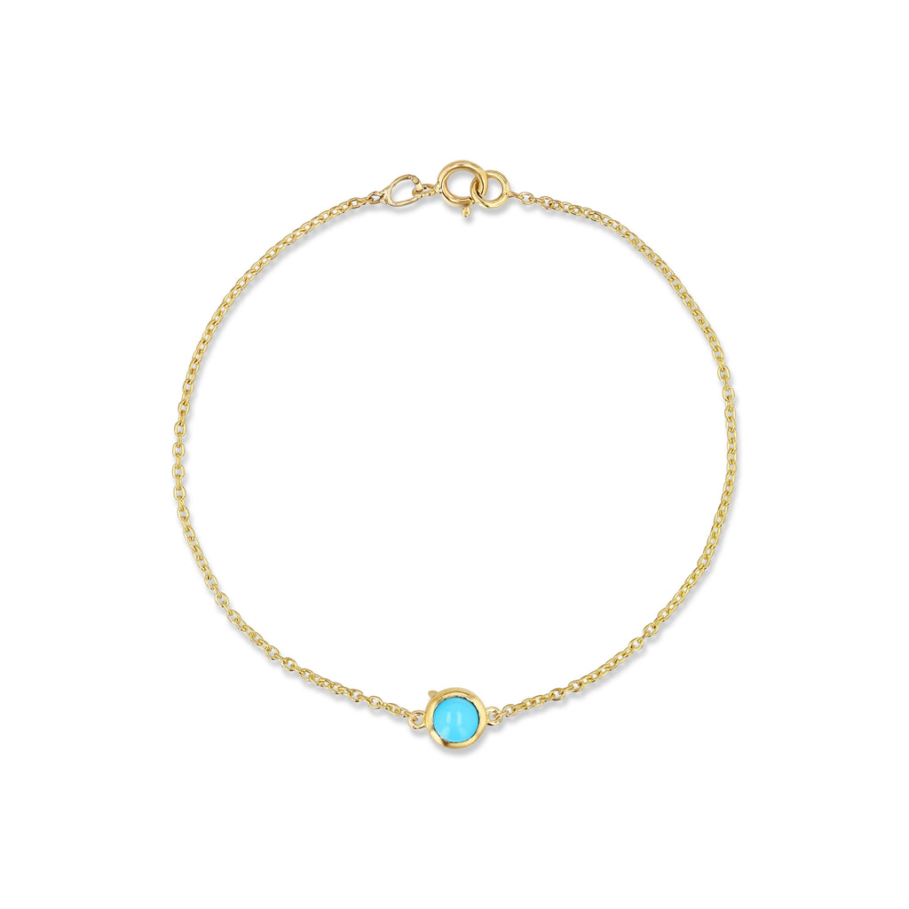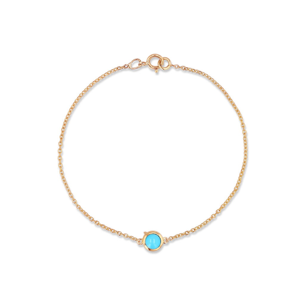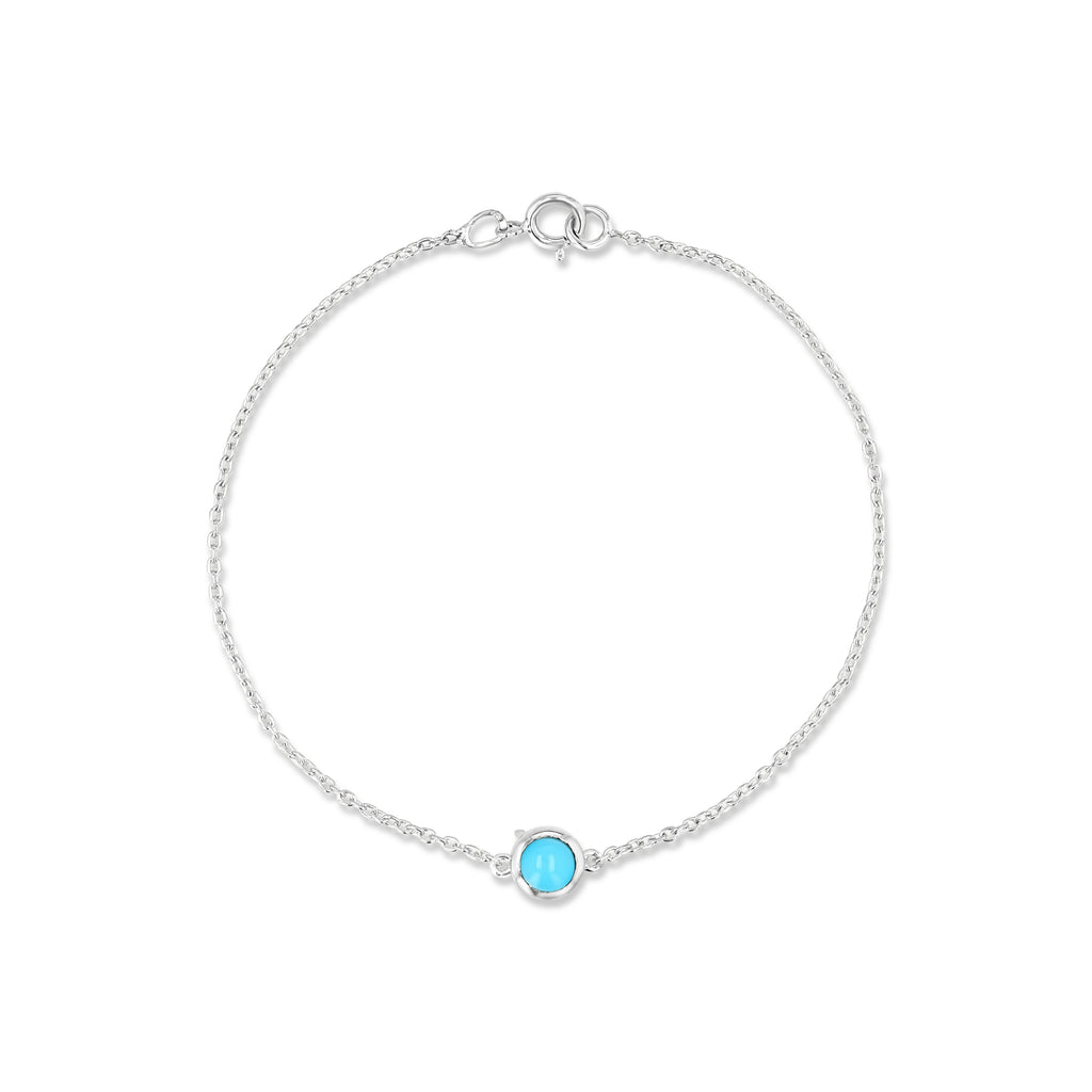 Turquoise Bezel Bracelet features a double-sized 4mm genuine Turquoise stone on a thick rolo chain.