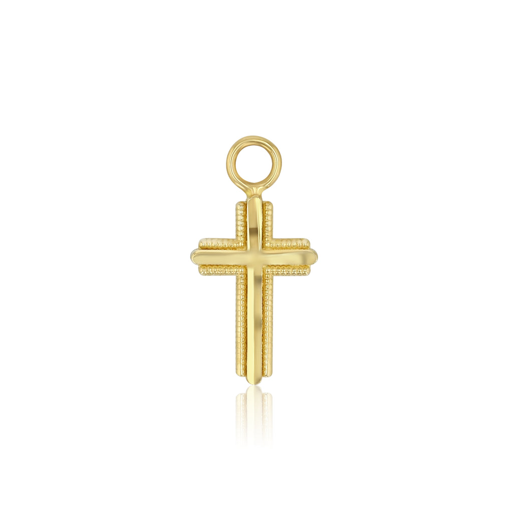 This cross hoop charm has a diamond cut detail making it shine bright and fit perfectly in hoop earrings or even studs.