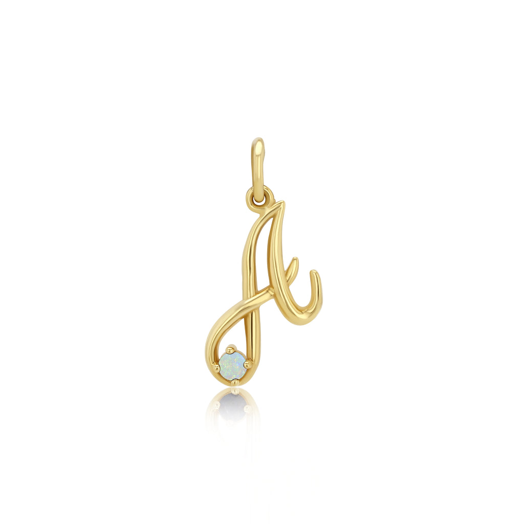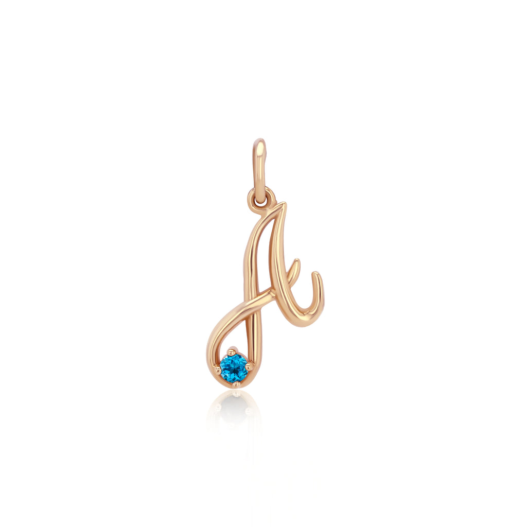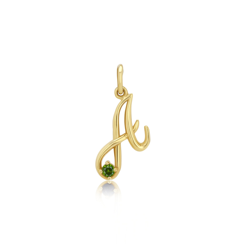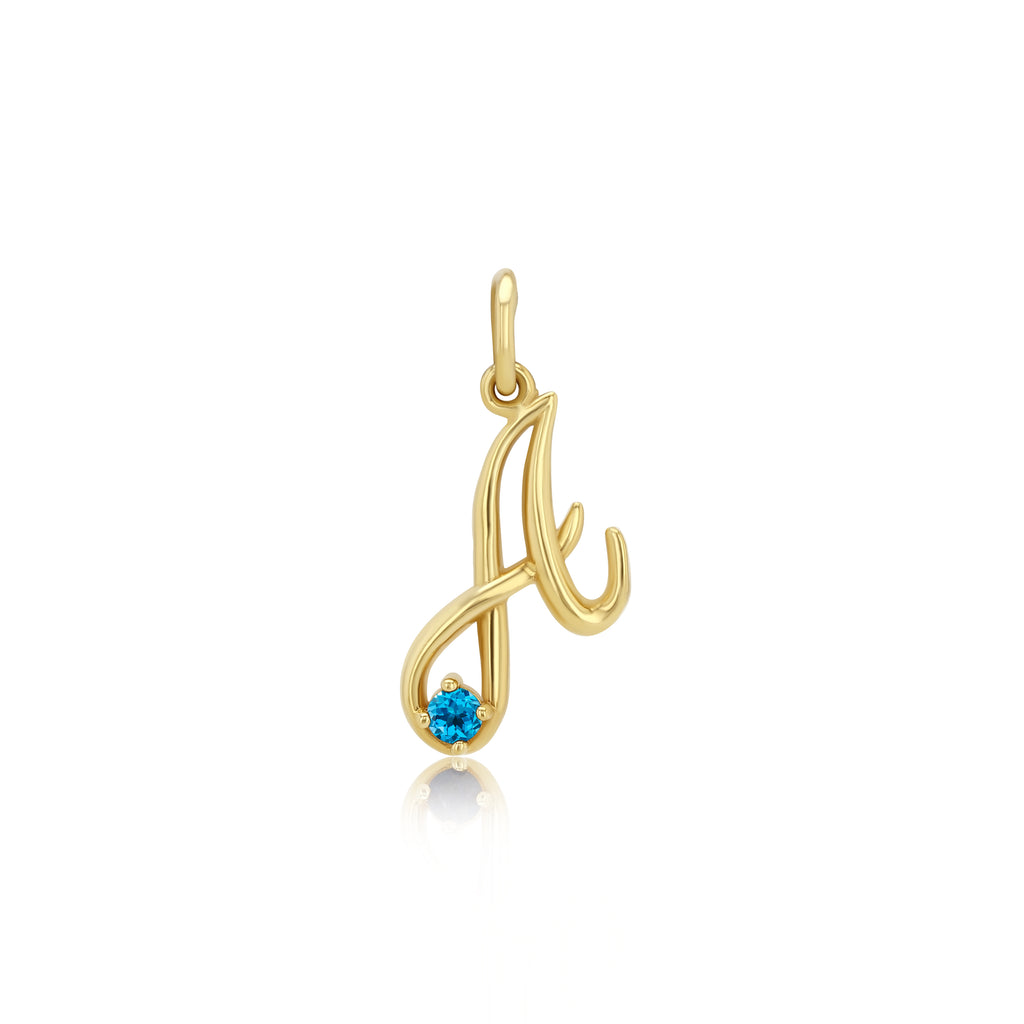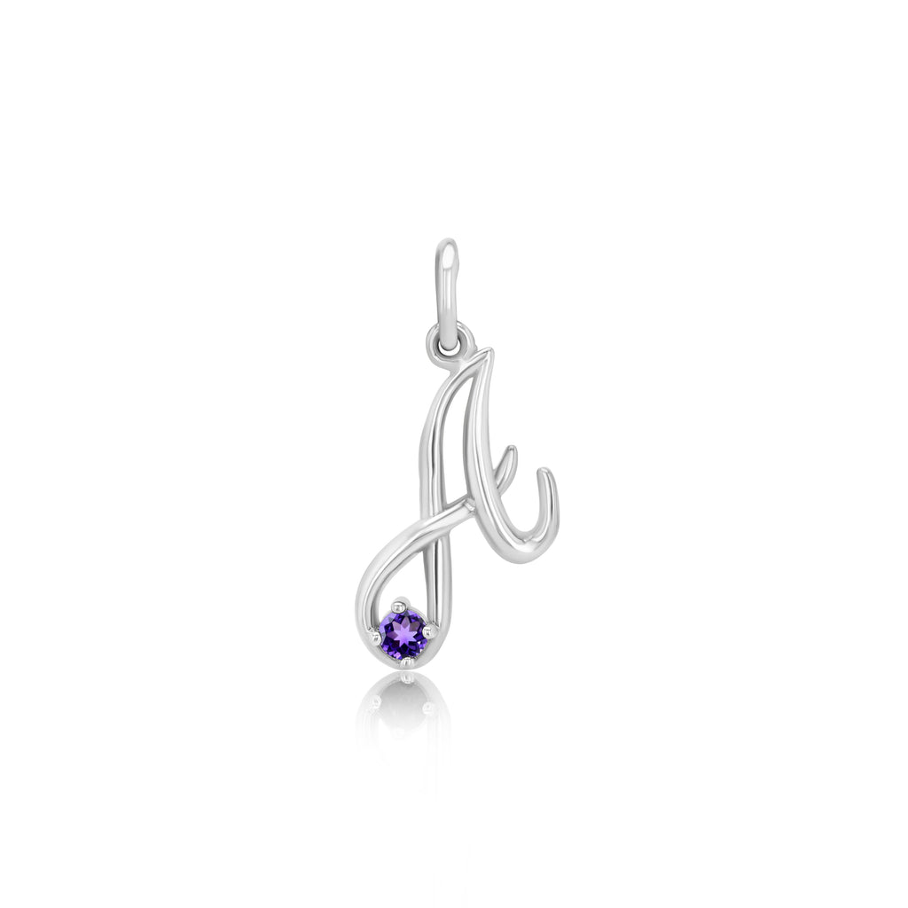 Initial pendant in cursive font adorned by a 2.5mm genuine gemstone representing each birth month. Sketch of font will be e-mailed prior to producing.