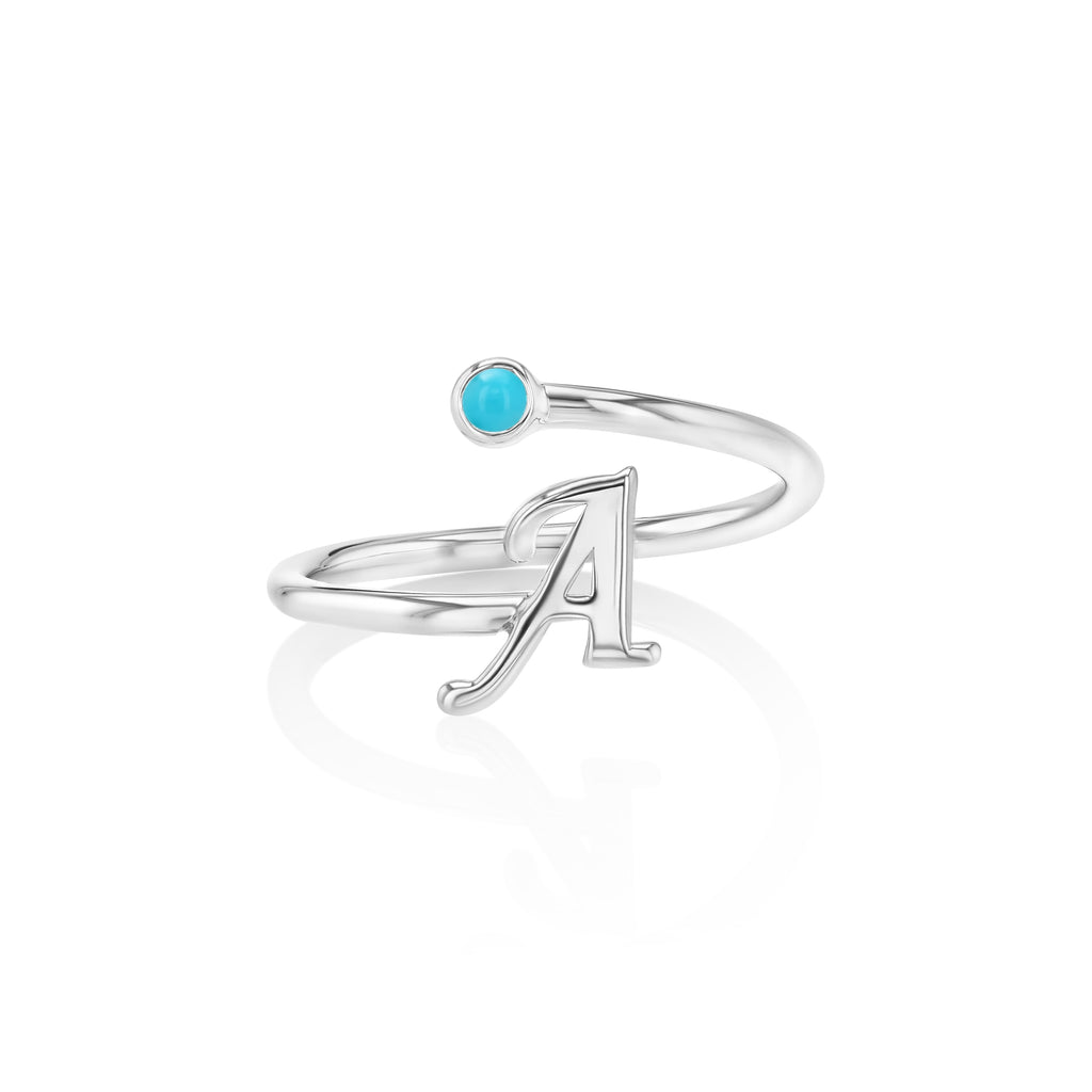 Adjustable Ring with Turquoise Stone (2.5mm) accent. To personalize your ring, please type in the English Letter or matching Armenian Number of your choice above.