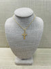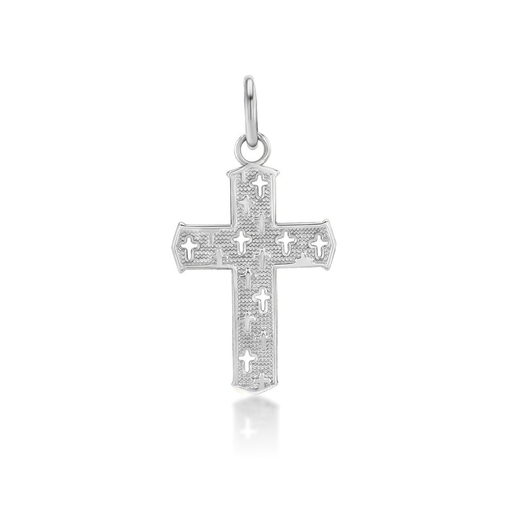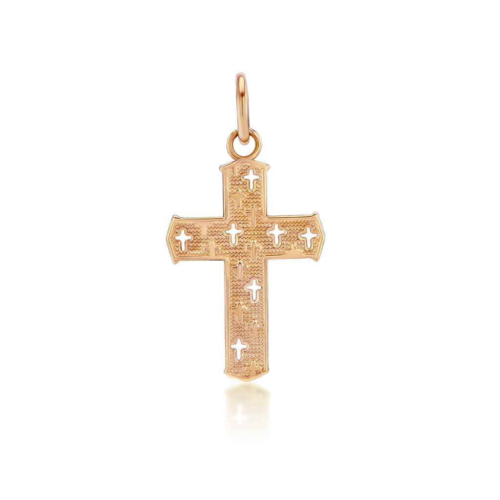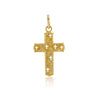 A solid gold charm featuring cross cutout details. A delicate gift for anyone.