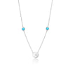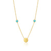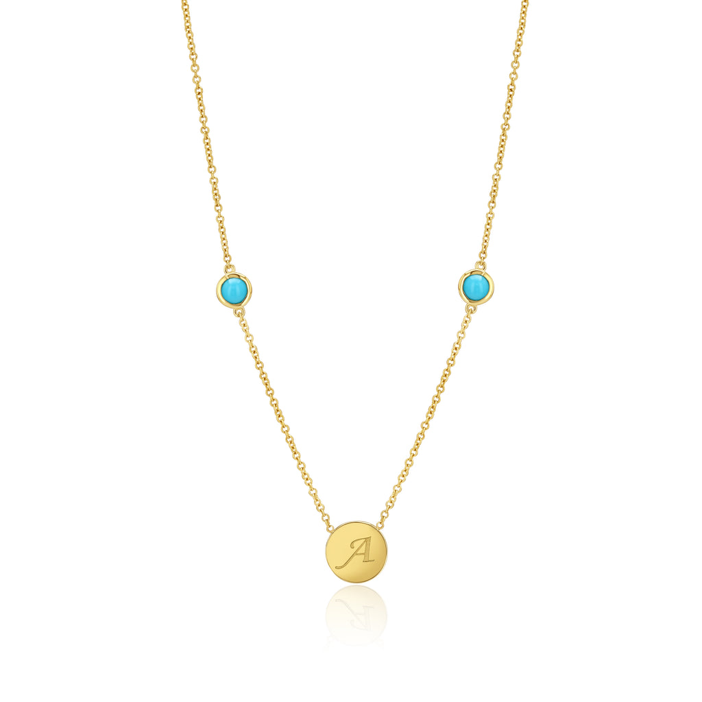 This beautiful 14k Gold Necklace is customizable with an initial of your choice and surrounded by two 4mm large turquoise bezels.