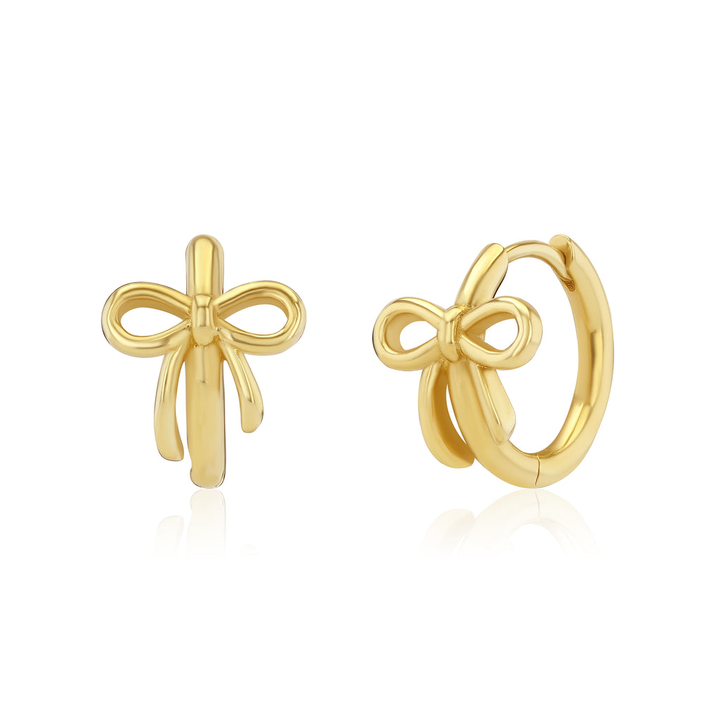 An effortless elegant staple that's perfect to updated your everyday look. This solid mini hoop adorned with a delicate bow, makes a perfect gift for your on-trend girl!